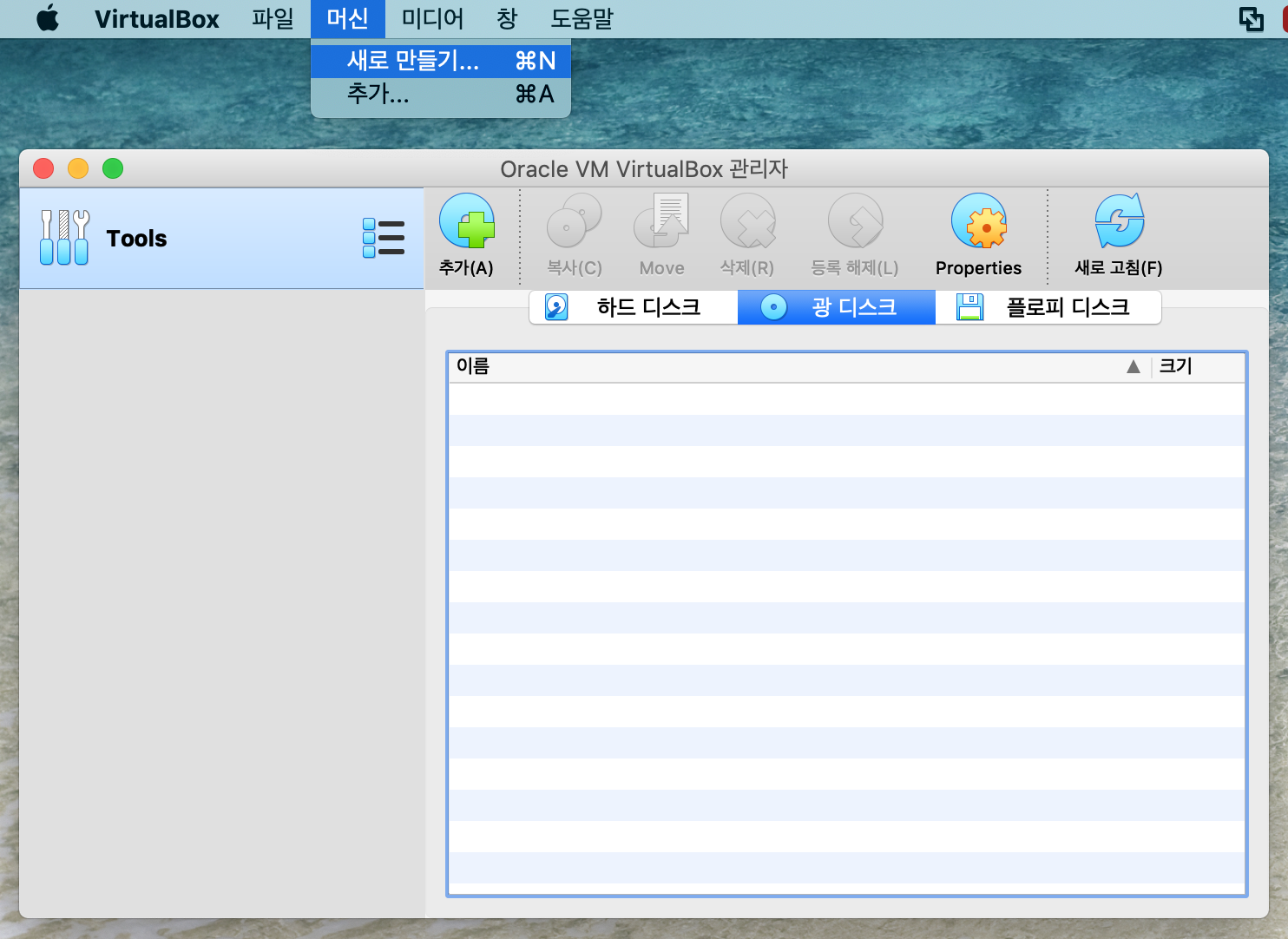 응용프로그램에서 virtualbox를 실행 시키고^^ 자 이제 설치해봐요^^