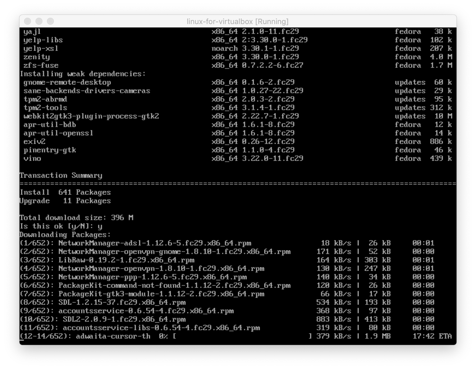 총 652개의 패키지와 396M의 용량이 필요한데 괜찮냐고 묻습니다..