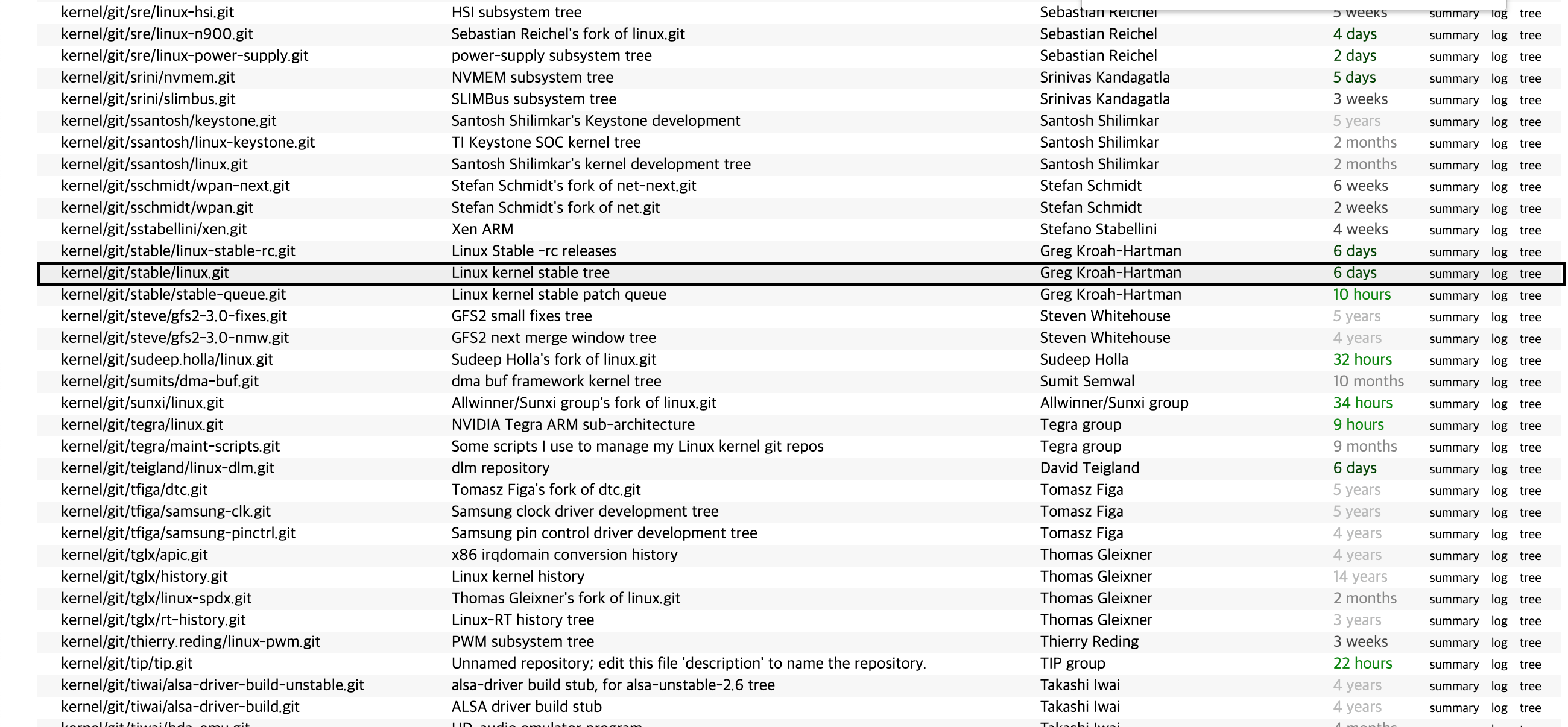 커널을 다운로드 받을 때는 먼저 적당한 git repository를 찾는 것이다. linux kernel stable tree!!를 찾으면 된다.